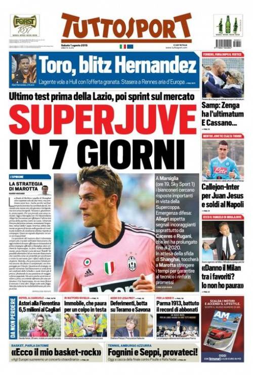 Su Tuttosport si parla della Juventus che in sette giorni cercherà di completare la rosa con gli ultimi colpi.
