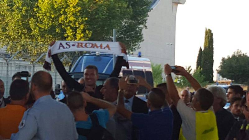 Il grande colpo della Roma è arrivato nella capitale ed è stato accolto come un eroe dai tifosi giallorossi. Edin Dzeko è a Trigoria per il bagno di folla e per conoscere i compagni, anche loro accorsi al campo per dare il loro benvenuto al bosniaco. Ben 1500 tifosi lo hanno celebrato al momento del suo arrivo a Fiumicino, prima che l’ex Manchester City si recasse al campo d’allenamento per parlare ancora con Baldissoni e Sabatini.