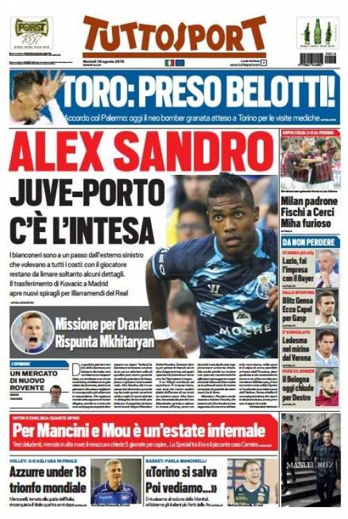 Su Tuttosport si parla dell’accordo tra Juventus e Porto per Alex Sandro, esterno sinistro brasiliano del Porto.