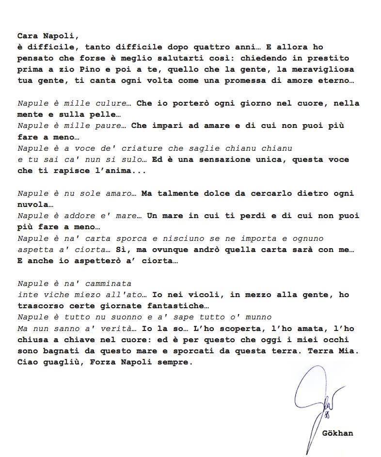 Gokhan Inler dice addio al Napoli. Il centrocampista svizzero è ormai un nuovo calciatore del Leicester City. Ad annunciarlo è lo stesso mediano svizzero con una foto pubblicata sul suo profilo Twitter. L’ex Napoli ha firmato un contratto della durata di tre anni e lascia Napoli dopo i lunghi accostamenti a molte altre squadre. Ecco il messaggio di addio al club partenopeo da parte di Inler.