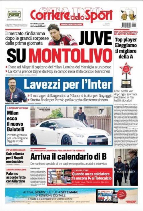 Il Corriere dello Sport parla della Juventus che ha intenzione di puntare su Riccardo Montolivo, centrocampista del Milan.