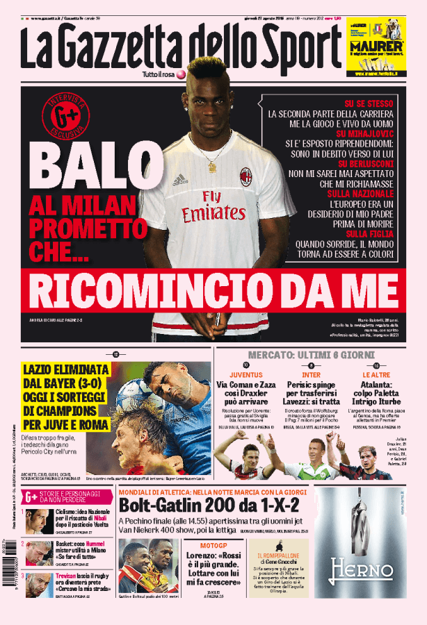 Intervista esclusiva alla Gazzetta dello Sport da parte di Mario Balotelli, attaccante del Milan, pronto per riprendersi la Nazionale.