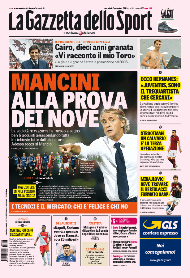 Sono ben 9 gli acquisti dell’Inter per rinforzare la rosa di Roberto Mancini. Ora toccherà al tecnico di Jesi plasmare la squadra.