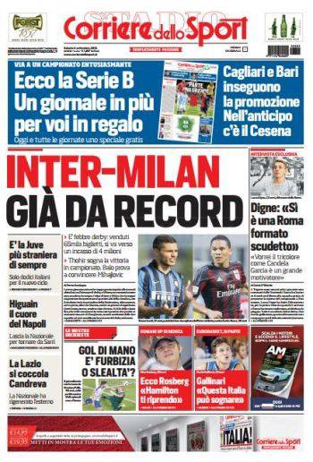 Il Corriere dello Sport parla della febbre derby tra Milan e Inter con i tifosi pronti a riempire San Siro.