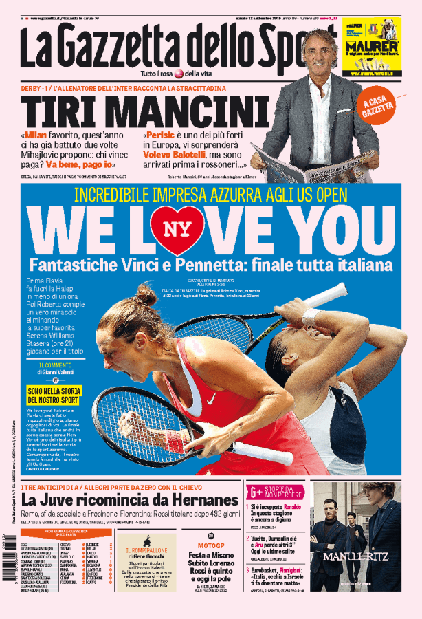 Incredibile agli Us Open, due italiane in finale per la prima volta nella storia del torneo: Flavia Pennetta contro Roberta Vinci.