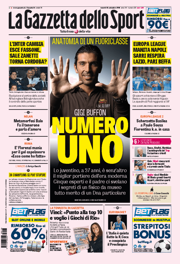 La Gazzetta dello Sport parla di Gigi Buffon come numero uno del Mondo. Cinque esperti parlano della situazione di Buffon.