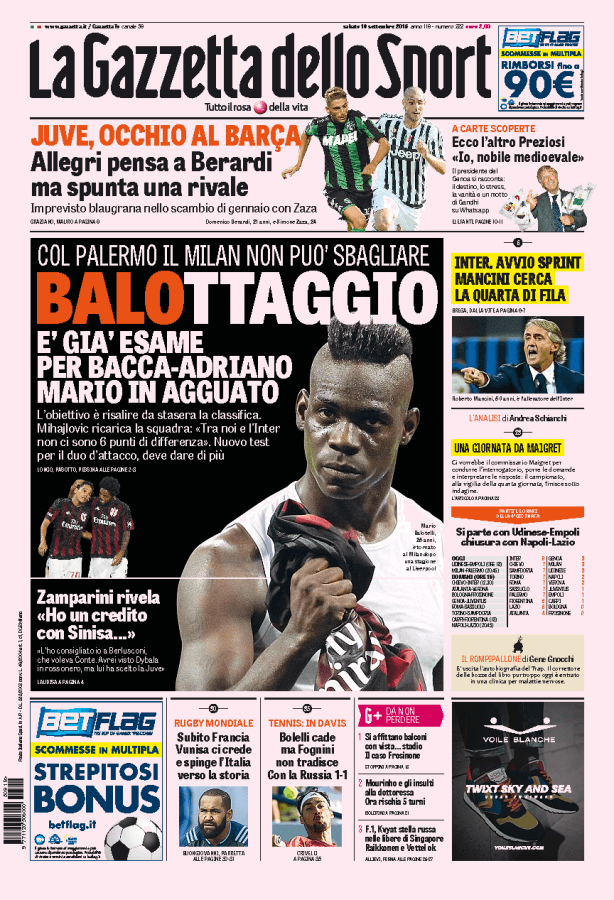 Il Milan è impegnato questa sera a Palermo e Balotelli potrebbe essere l’arma a sorpresa di Sinisa Mihajlovic.