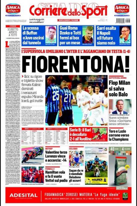Anche il Corriere dello Sport rende merito alla grande prova della Fiorentina che vince quattro a uno sul campo dell’Inter.