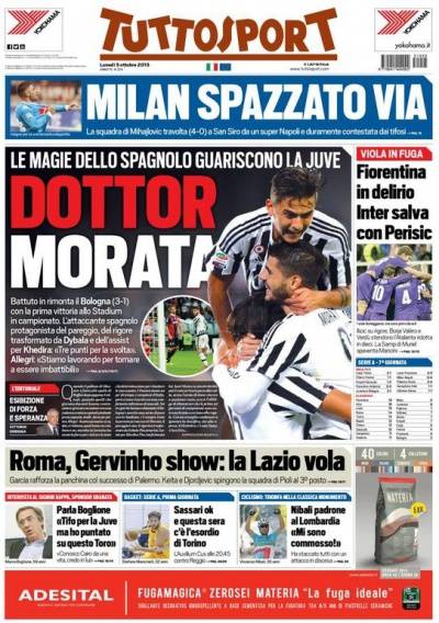 Su Tuttosport si parla di Alvaro Morata che ieri ha siglato il gol del pareggio contro il Bologna dando il via libera alla rimonta bianconera.