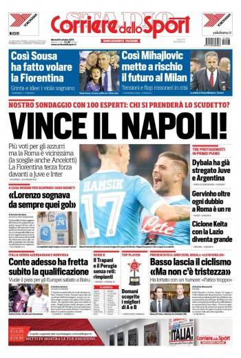 Il Corriere dello Sport parla del Napoli che viene visto come il principale candidato allo Scudetto da molti esperti.
