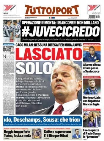 Tuttosport parla di Sinisa Mihajlovic, tecnico del Milan, che non è stato difeso dalla società in questo momento difficile.