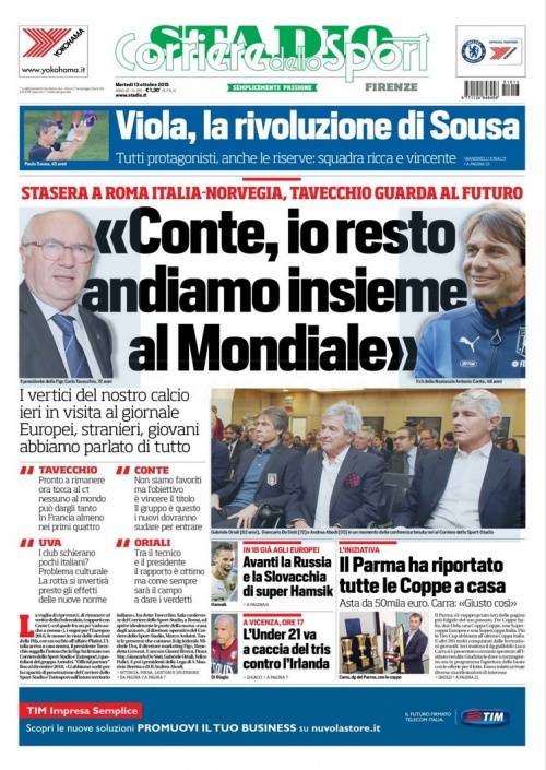 Il Corriere dello Sport rilancia le dichiarazioni del presidente Tavecchio che invita Conte a restare per partecipare ai prossimi Mondiali.