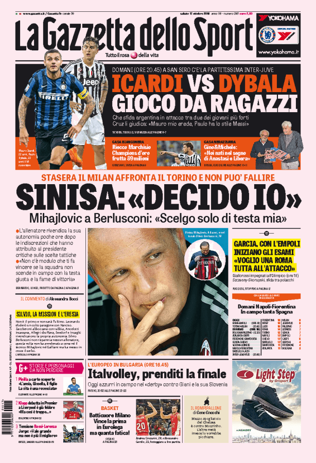 La Gazzetta dello Sport parla delle dichiarazioni di Mihajlovic di ieri che ha voluto essere molto chiaro riguardo le decisioni tattiche.