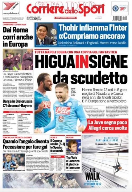Il Corriere dello Sport ha parlato del Napoli di Higuain e Insigne che va a caccia dello Scudetto. Una coppia d’attacco strepitosa.