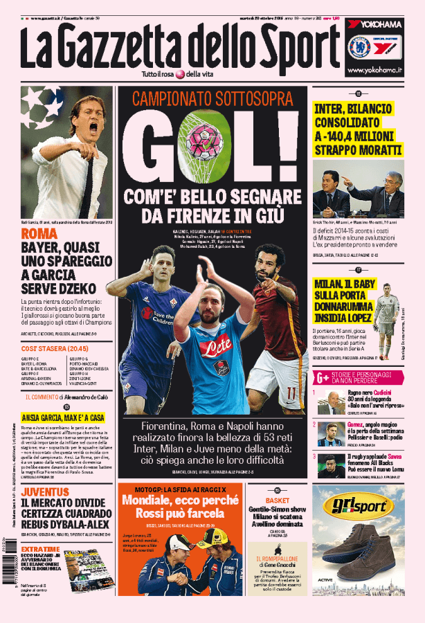La Gazzetta dello Sport analizza i problemi realizzativi delle squadre del Nord che segnano molto di meno rispetto a quelle del sud.