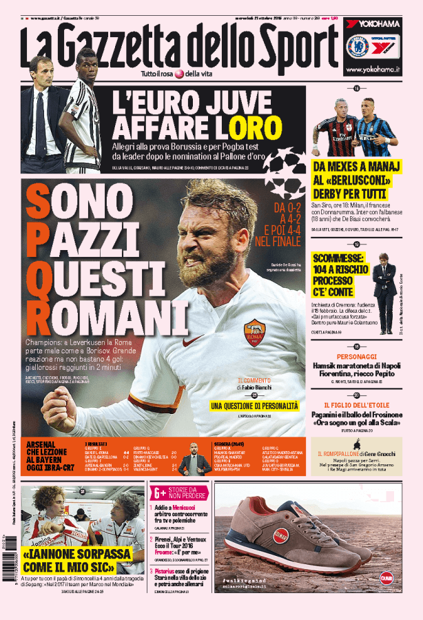 La Roma pareggia incredibilmente a Leverkusen contro il Bayer per quattro a quattro dopo aver recuperato due gol ed aver subito la rimonta.