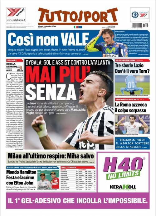 Tuttosport celebra la vittoria della Juventus contro l’Atalanta con un Dybala assoluto protagonista con gol e assist.