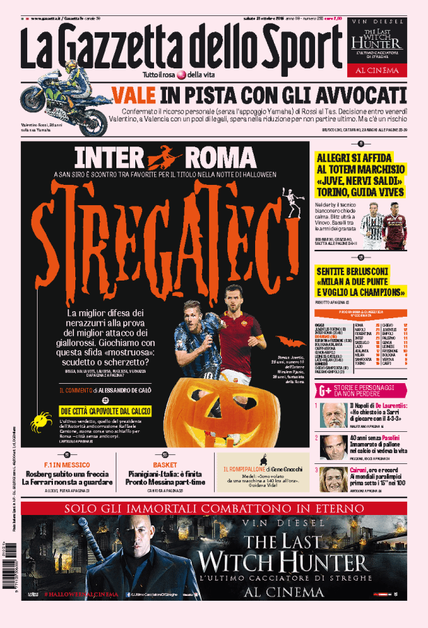 Nella notte di Halloween si sfidano Inter e Roma, due club pronti a duellare per il ruolo di capolista in campionato.