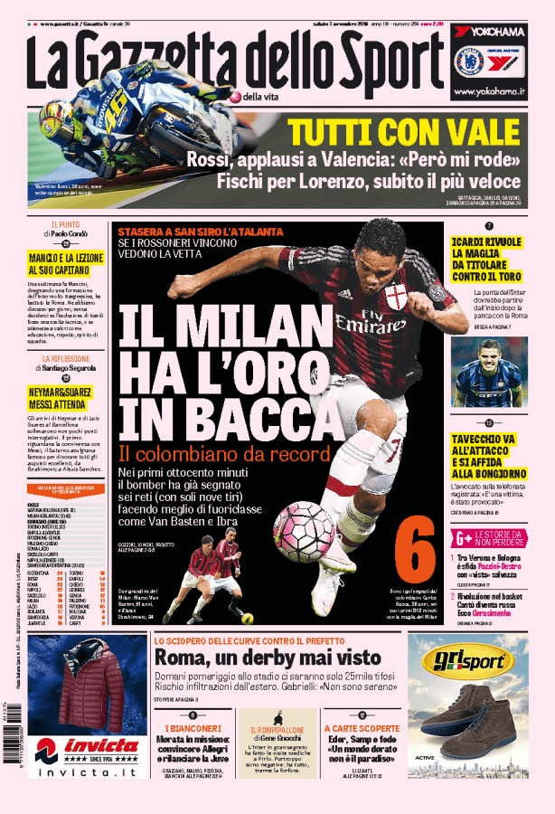 La Gazzetta dello Sport parla del match di questa sera tra Milan e Atalanta con i rossoneri che si affideranno a Bacca.