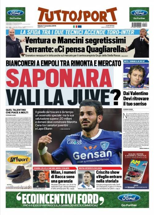 Su Tuttosport si parla di Saponara che giocherà contro la Juventus domani pomeriggio e mostrerà le sue qualità ai bianconeri.
