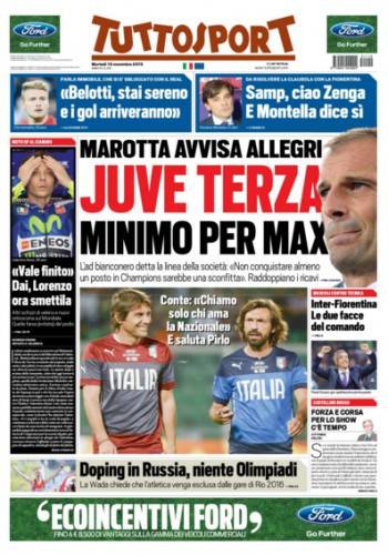 Su Tuttosport si parla della Juventus e in particolare per l’obiettivo minimo, ovvero il terzo posto. Marotta ha avvisato Allegri.