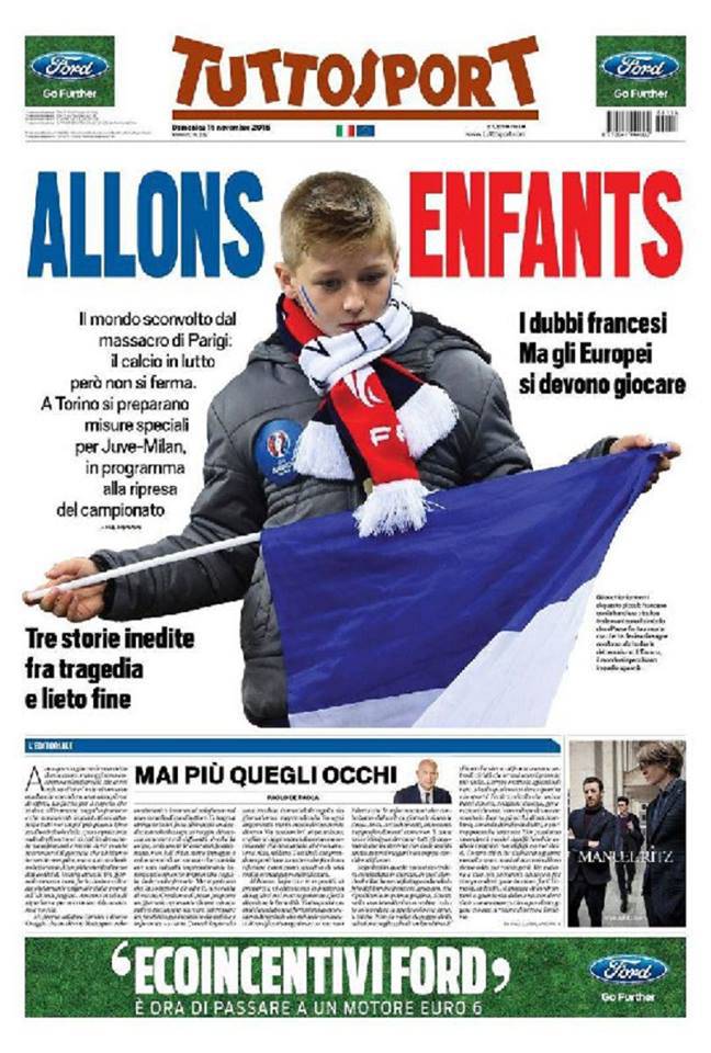 Il mondo sconvolto dal massacro di Parigi, il calcio in lutto ma non si ferma. A Torino preparano misure speciali per Juventus-Milan, in programma alla ripresa del campionato. I duebbi francesi ma gli Europei si devono giocare.