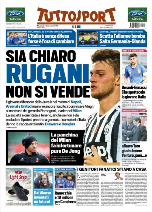 Su Tuttosport si parla di Rugani che piace a tanti club italiani ed europei ma la Juventus non ha voglia di vendere.