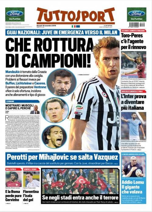 Su Tuttosport si parla della Juventus che rischia di non avere quattro giocatori a disposizione contro il Milan.