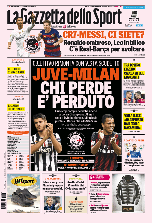 Questa sera il grande match tra Juventus e Milan in programma allo Juventus Stadium. Chi perde è davvero perduto.