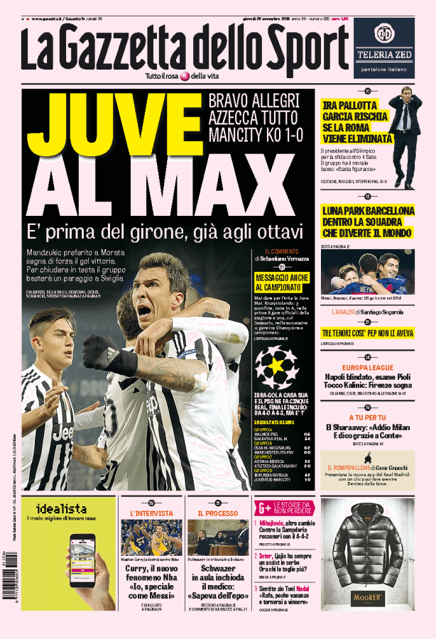 La Juventus si qualifica agli ottavi di finale di Champions League e potrebbe passare come prima in classifica.
