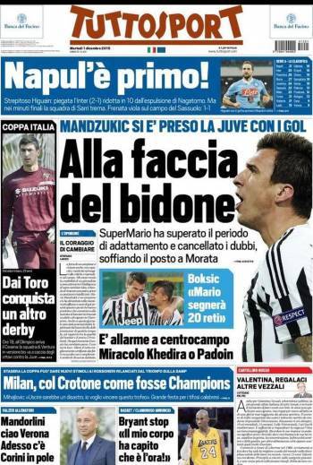 Su Tuttosport si parla di Mandzukic che dopo le critiche iniziale adesso sta convincendo tutti quanti a suon di gol.
