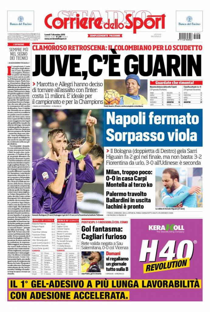Il Corriere dello Sport parla di Fredy Guarin, centrocampista colombiano che piace molto alla Juventus. Costa 11 milioni di euro.