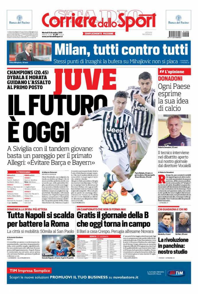 Il Corriere dello Sport parla della Juventus che contro il Siviglia giocherà con il tandem d’attacco Morata-Dybala.