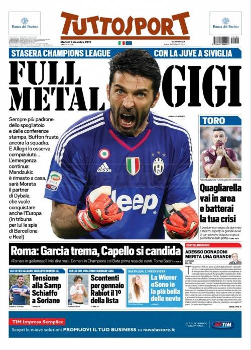 Tuttosport parla della figura di Buffon che è diventato ormai il leader dello spogliatoio bianconero e ha caricato la squadra in vista del match contro la Juventus.