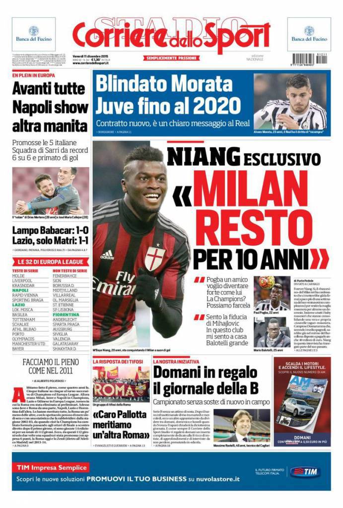 Il Corriere dello Sport ha intervistato Niang, attaccante francese che ha rivelato la volontà di restare in rossonero per altri dieci anni.