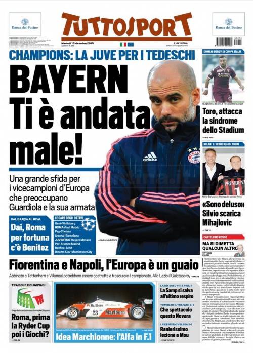 Su Tuttosport si parla del sorteggio Champions per la Juventus che ha pescato il Bayern Monaco di Pep Guardiola.