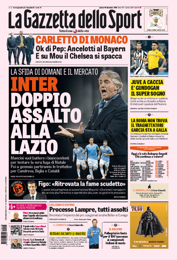 La Gazzetta dello Sport parla dell’Inter che tenterà di battere la Lazio e soprattutto puntare su qualche gioiello dei biancocelesti.