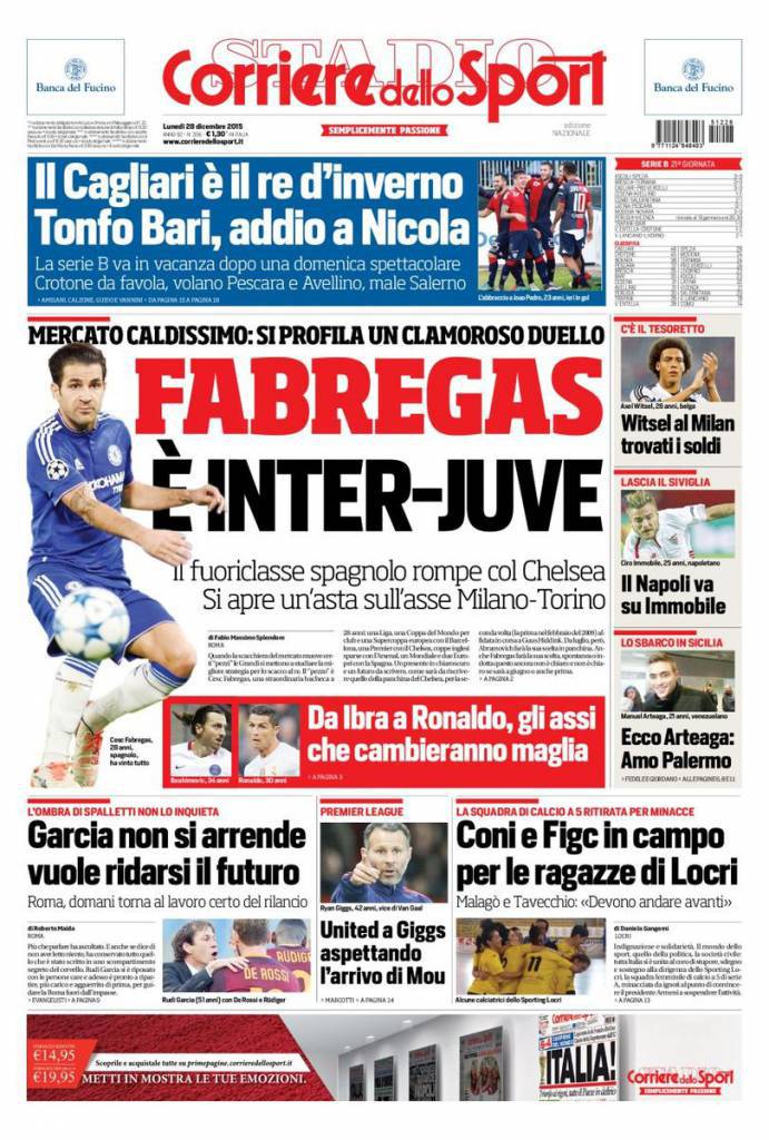 Il Corriere dello Sport parla di Fabregas che potrebbe approdare in Italia. Duello tra Inter e Juventus per lo spagnolo.