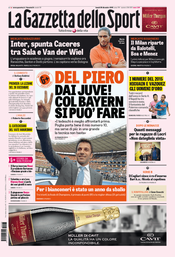 La Gazzetta dello Sport propone l’intervista esclusiva di Alessandro Del Piero alla Gazzetta dello Sport.