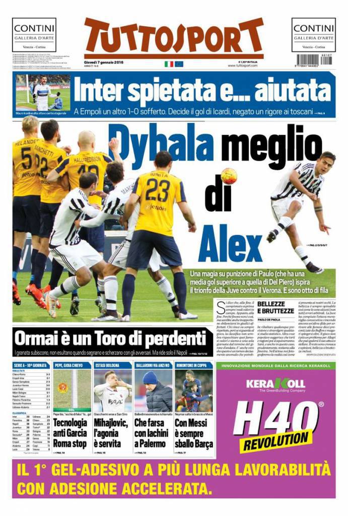 Su Tuttosport si parla di Dybala che segna di punizione e ha una media gol davvero importante, più di Del Piero.