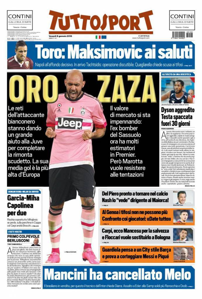 Su Tuttosport si parla di Simone Zaza che ha la media gol più importante d’Europa. Un tesoro importante per la Juventus.