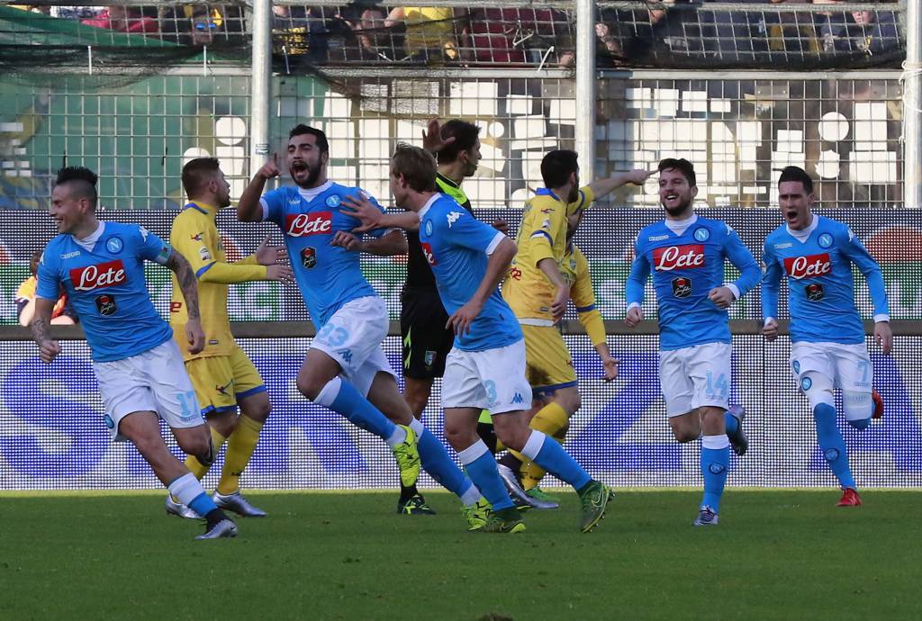 Napoli (4-3-3): Reina 6; Hysaj 6.5, Albiol 7, Koulibaly 6, Strinić 5; Allan 6.5, Jorginho 6.5, Hamšík 7.5 (77′ Chalobah sv); Callejón 6.5 (75′ El Kaddouri 6), Higuaín 8 (65′ Gabbiadini 7), Mertens 7. A disp.: Gabriel, Rafael, Maggio, Chiricheș, Ghoulam, Luperto, David López, Valdifiori, Insigne. All.: Sarri 7.5.