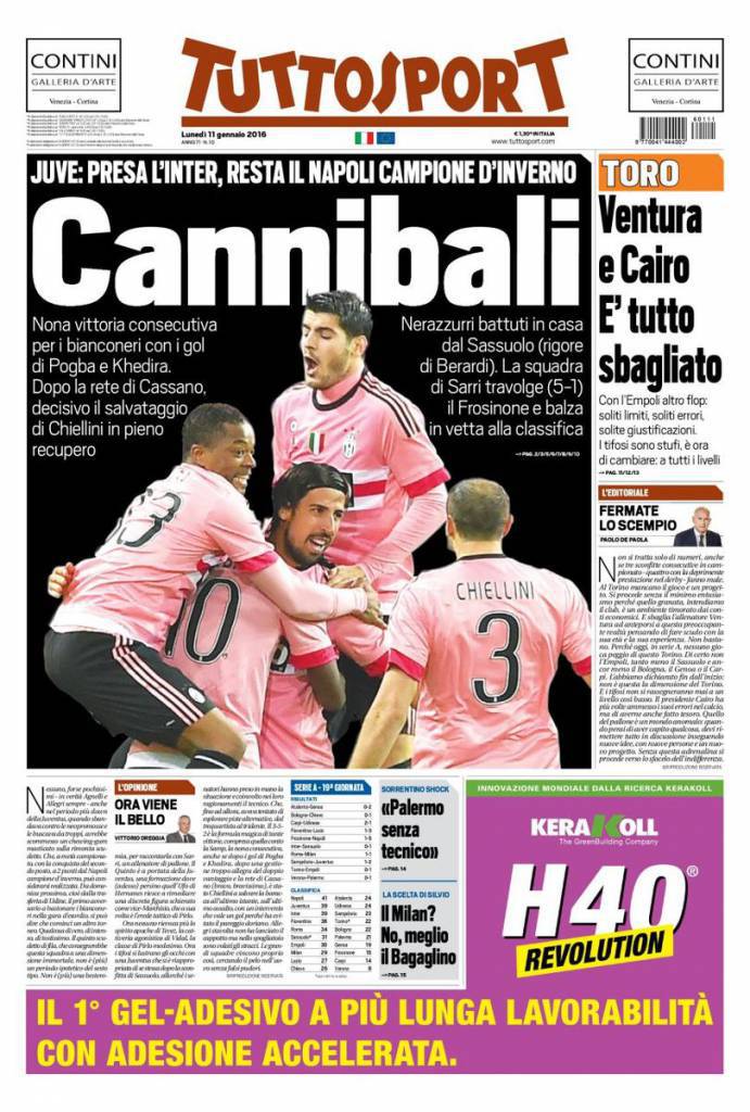 Su Tuttosport si parla della Juventus che vince per la nona volta consecutiva e vola al secondo posto in classifica.