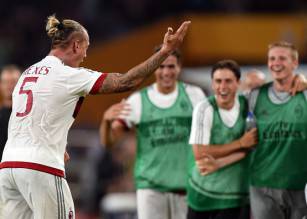 Abbiati, Donnarumma, Livieri; Abate, Alex, Antonelli, Calabria, De Sciglio, Romagnoli, Simic, Zapata; Bertolacci, Bonaventura, De Jong, José Mauri, Kucka, Montolivo, Poli; Bacca, Balotelli, Boateng, Honda, Niang.