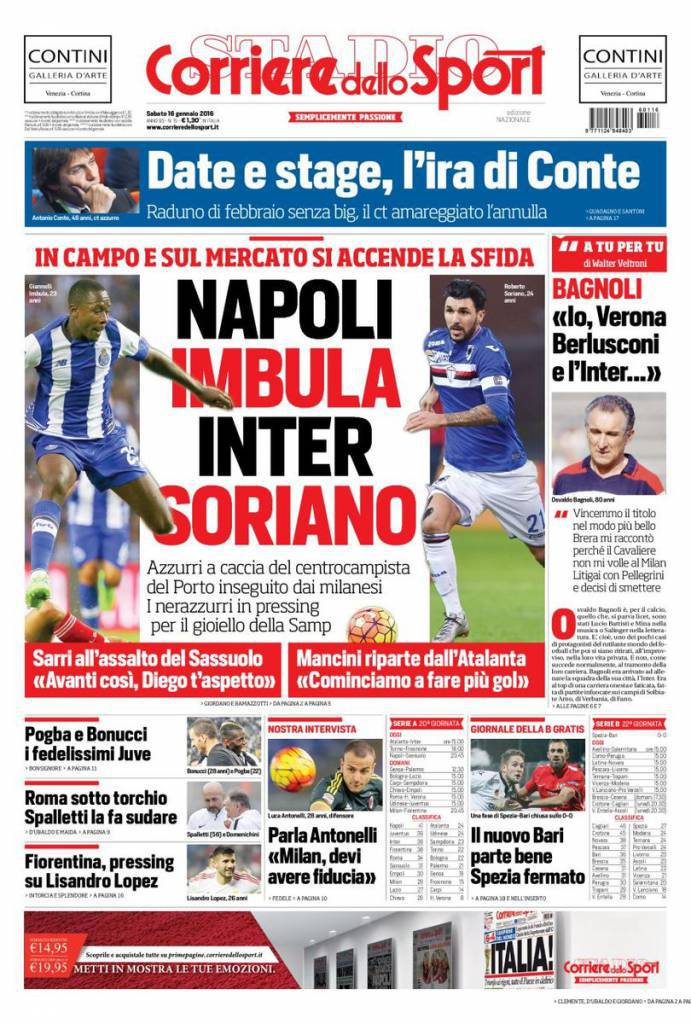 Il Napoli punta forte su Imbula, centrocampista francese del Porto mentre l’Inter piomba su Soriano della Sampdoria.