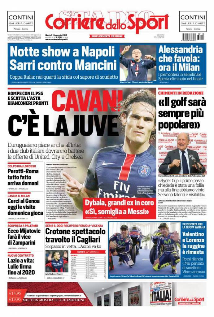 Torna alla carica per Edinson Cavani la Juventus. Ne è sicura la redazione del Corriere dello Sport che apre così stamani la sua edizione. Il bomber uruguaiano ex Napoli, arriverà finalmente in bianconero?