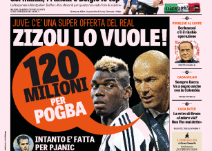 La Gazzetta dello Sport parla di Pogba che piace tanto al Real Madrid con Zidane pronto a puntare sul francese.