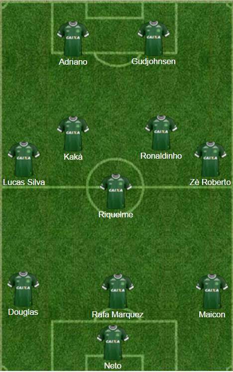 In porta spicca il nome di Neto, attuale vice Buffon alla Juventus. In difesa, oltre a Douglas (Sporting Gjion) potrebbero sposare la causa della Chapecoense anche Rafa Marquez (ora all’Atlas nel campionato messicano) e Maicon. Marquez, storica colonna della Nazionale messicana ed ex Barcellona, non ha bisogno di presentazioni; esattamente come Maicon, ex Roma e Inter adesso svincolato. A centrocampo spiccano i nomi dell’ex Real Madrid Lucas Silva, Riquelme, Ronaldinho e anche quello di Kakà, oggi all’Orlando in Mls. Completano la formazione tre giocatori molto noti agli appassionati: Gudjhonsen, Zè Roberto e Adriano. L’ex Imperatore interista. Vedremo se Ronaldinho riuscirà a convincerli.