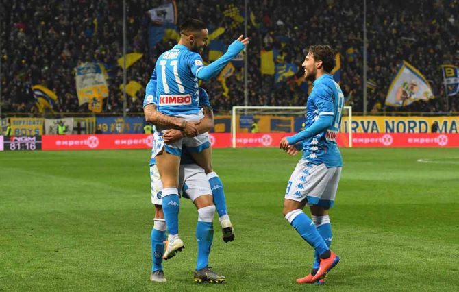 NAPOLI (4-4-2): Meret; Malcuit (1’st Mertens), Maksimovic, Koulibaly, Hysaj; Callejon (32’st Ounas), Allan, Ruiz, Zielinski; Insigne, Milik (27’pt Ospina). A disposizione: Karnezis, Luperto, Chiriches, Rui, Ghoulam, Diawara, Younes, Verdi. Allenatore: Ancelotti.