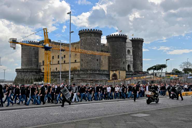 Con l’approssimarsi dell’orario del match sale la tensione e anche lo stato di allerta. I tifosi tedeschi che si sono rifiutati di salire sui pullman che li avrebbero riportati in albergo sono stati dirottati sul lungomare. Scortati dalla Polizia che vuole a tutti i costi evitare possibili scontri coi tifosi partenopei e/o con la popolazione. Sarebbero in corso anche dei fitti dialoghi tra la Digos di Napoli e una delegazione di supporters teutonici. Si teme che parecchi di loro possano fare un estremo tentativo di entrare allo stadio in in orario vicino al match, o addiritura aspettare fuori dall’impianto i sostenitori azzurri.